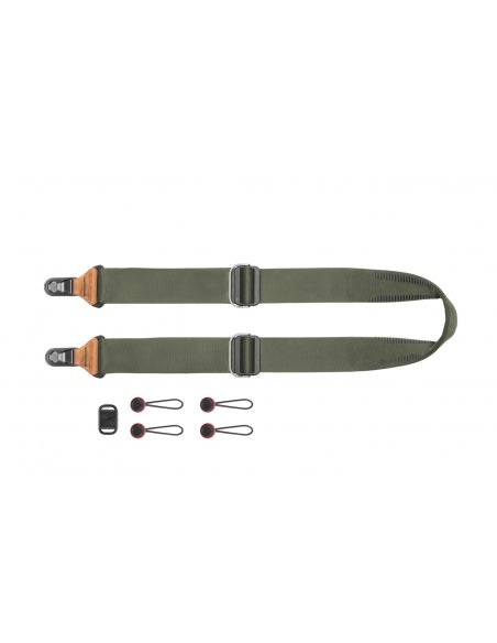 The original Peak Design flagship camera strap, Slide is everything other pro camera straps aren't: beautiful, low-profile, adjustable, quick-connecting, and configurable to your gear. Wear Slide as a sling, neck, or shoulder strap. Internally-padded nylon webbing has a smooth side that glides over clothing in sling mode and a grippy side that prevents slipping in shoulder mode. Dual quick-adjusters provide instant access and easy reconfiguration. The unique Anchor Link system connects quickly and dual points of connection keep your camera more stable than traditional sling straps. Each Anchor holds over 200lbs (90kg), strong enough to keep the heaviest of pro rigs safe. As of 2018, Slide features an improved silicone grip, upgraded webbing, and lower profile strap/hardware transitions. Anchor connectors have been updated to be smaller, faster, and more secure.